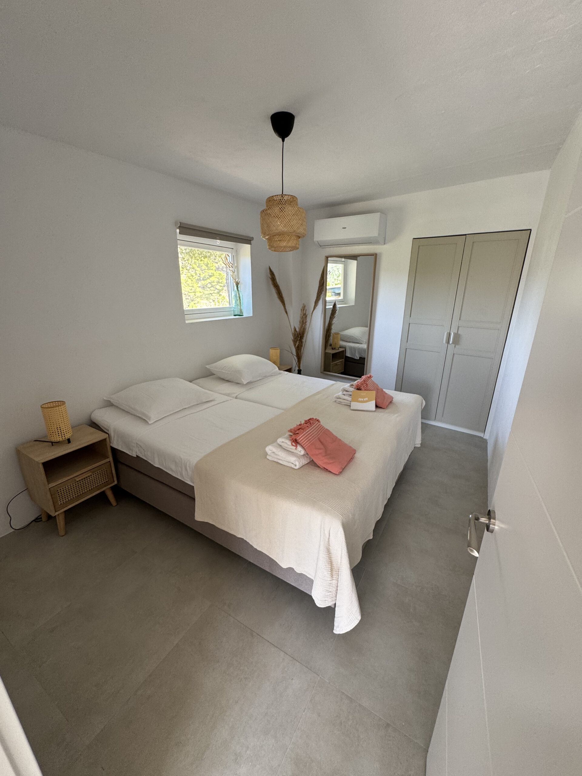 Outside, enjoy complete privacy and tranquility. The property is fully fenced with private parking. On the sunny terrace, you’ll find a dining area, lounge sofa, barbecue, and an outdoor shower – perfect for relaxing after a beach day or exploring the island. Families are well-catered for, with highchairs, baby cots, and other amenities available on request.